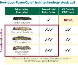 PowerCore® trait technology brings long-lasting insect control against key above-ground susceptible insects.