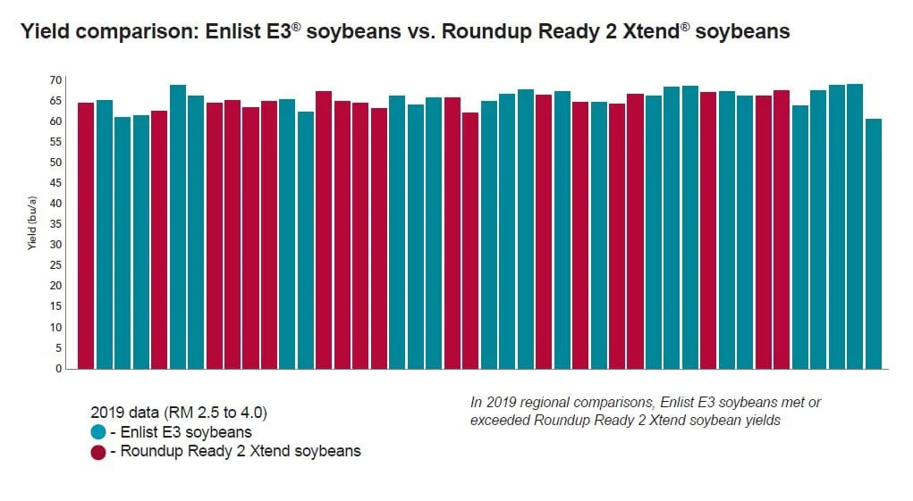Enlist E3® soybeans showed great performance in 2019, matching or exceeding the yields of other systems.